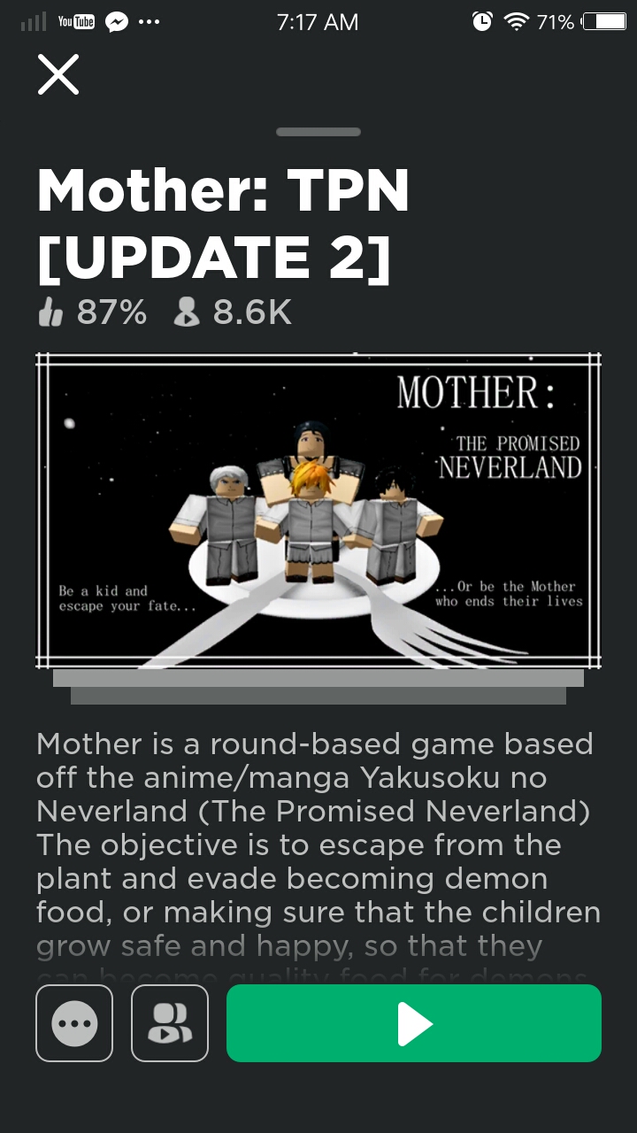 A Promised Neverland Roblox Game Mother Tpn Youtube