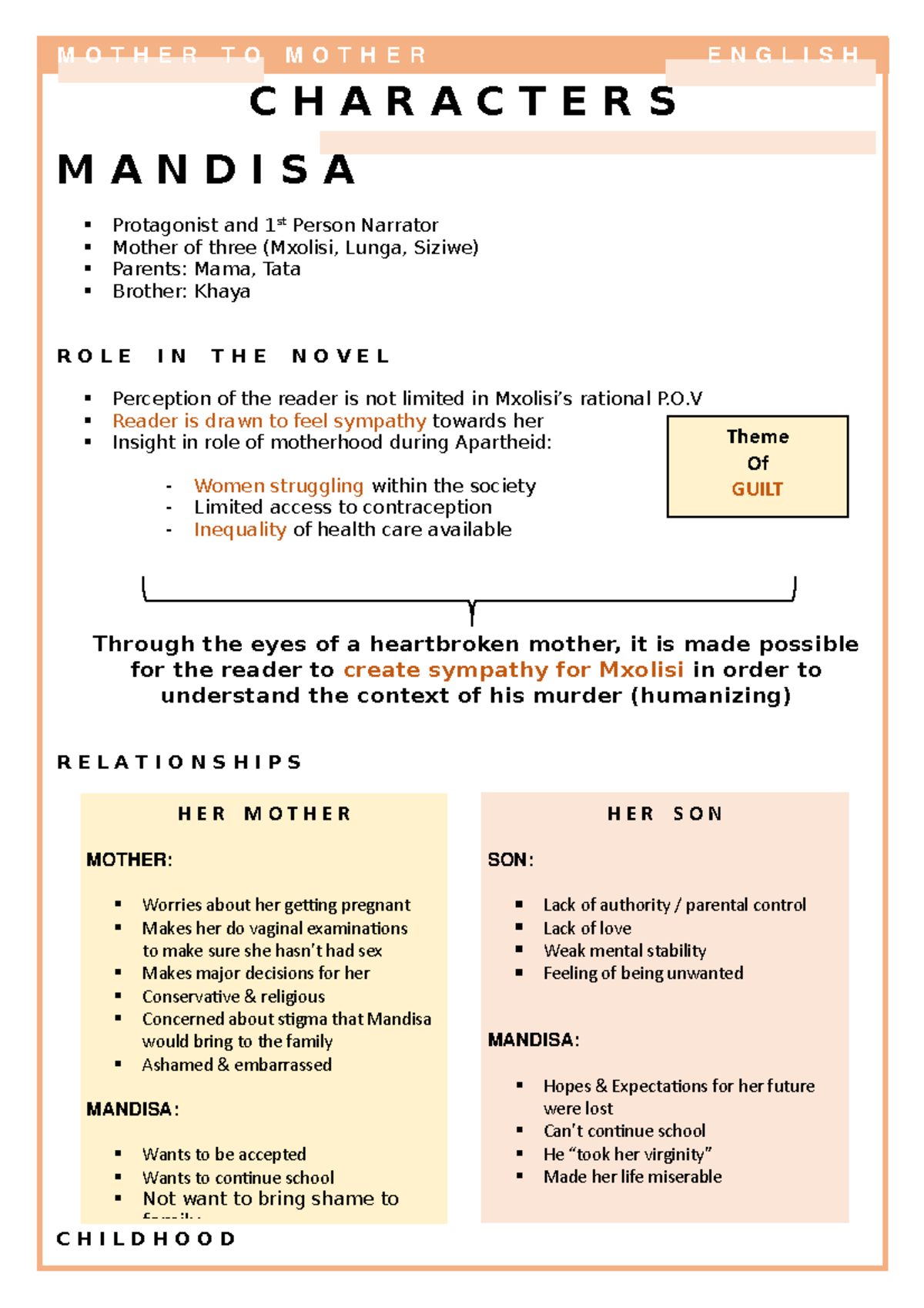 Since the homicide Mandisa says individuals have treated. Start studying Mother to Mother Chapter 2 p89. Mother to Mother Summary and Study Guide.